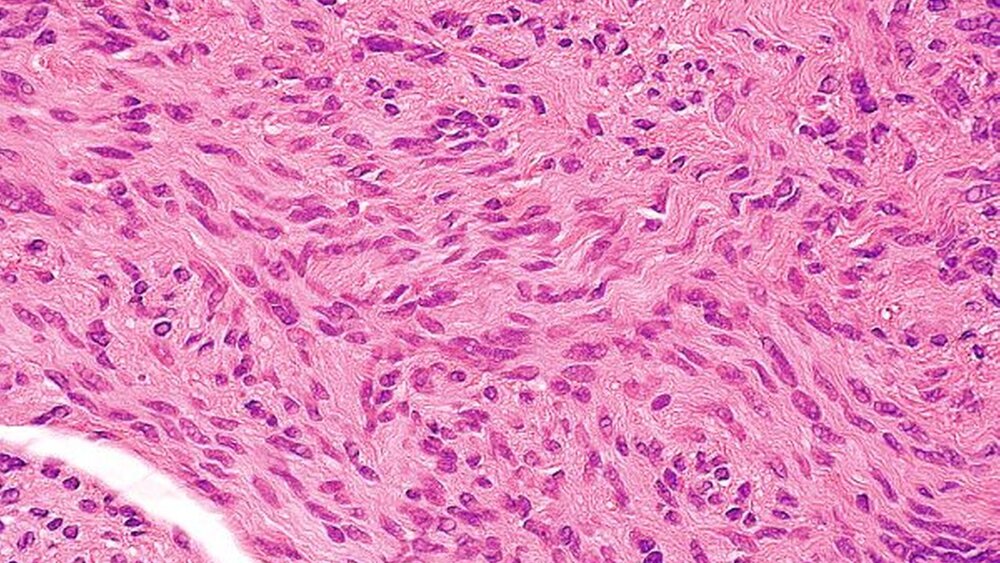 Ein 49-jähriger, männlicher Patient ohne weitere Allgemeinerkrankungen wurde uns zur weiteren Abklärung einer Raumforderung im Trigonum submandibulare der linken Seite vorgestellt. Der Patient erinnerte sich, bereits vor Jahren einmal in dieser Region operiert worden zu sein, ohne jedoch genaue Angaben über das Ausmaß des Eingriffs oder die definitive Diagnose machen zu können (Abbildung 1). Die Vorstellung erfolgte, nachdem der Patient subjektiv über Monate eine Größenprogredienz festgestellt hatte, wobei die klinische Untersuchung der Motorik und Sensorik im Kopf- Hals-Bereich keine Auffälligkeiten erbrachte. Anamnestische Hinweise für das Vorliegen einer B-Symptomatik, wie Fieber, Nachtschweiß oder Gewichtsverlust, lagen nicht vor. Perimandibulär links war eine „Walnussgroße“, zum umgebenden Gewebe gut verschiebliche und nicht druckdolente Raumforderung palpierbar. Der Patient präsentierte sich zudem mit einem konservierend und prothetisch versorgten Restgebiss ohne Hinweise für einen dentogenen Fokus einer möglichen Infektion (Abbildung 2). In der zervikalen B-Mode-Sonografie (Abbildung 3) grenzte sich eine knapp drei Zentimeter große, nahezu homogen echoarme und komprimierbare Raumforderung vom umgebenden Weichgewebe ab, die dorsal eine Echoverstärkung aufwies und im Dopplermode keine gesteigerte Durchblutung erkennen ließ. Eine alio loco vom Hausarzt bereits initiierte Computertomografie erbrachte keinen Nachweis von Osteolysen oder pathologischen Lymphknotenvergrößerungen als Hinweise für Malignität der vorliegenden Raumforderung. Der Befund wurde über eine submandibuläre Inzision bei intraoperativem Monitoring des Ramus marginalis aus dem subcutanen Fettgewebe freipräpariert und in toto nach Ablösung von der Faszie des M. masseter exstirpiert. Bei Anschnitt des makroskopisch braun erscheinenden Tumors eröffnete sich ein Zystenlumen, aus dem sich reichlich dunkelbraunes Sekret entleerte (Abbildung 4). Zusätzlich wurde in gleicher Sitzung eine etwa 0,5 cm durchmessende derbe Papel im Bereich der Oberlippenschleimhaut spindelförmig in toto exzidiert, die nebenbefundlich zuvor im Rahmen der klinischen Untersuchung aufgefallen war. In der Histologie zeigte sich für die perimandibuläre zystische Raumforderung das typische Bild eines apokrinen Hidrozystoms mit einer von einem hoch prismatischen Epithel ausgekleideten Zyste und fokalen epithelialen papillären Epithelausstülpungen (Abbildung 5). Das Oberlippenexzidat erbrachte den Nachweis eines subepithelialen, spindelzelligen mesenchymalen Tumors mit intrazytoplasmatischer Reaktion gegen S100, welches dem histologischen Bild eines peripheren Neurinoms (Schwannom) entspricht (Abbildung 6). In beiden Fällen stellte die vollständige Exzision die Therapie der Wahl dar, und der Patient ist seither rezidivfrei.