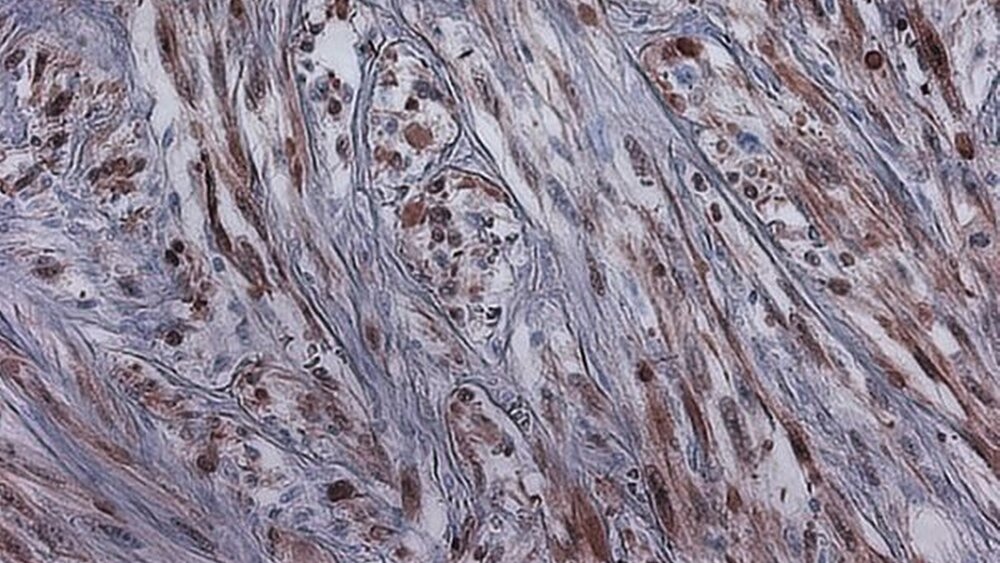 In der Histopathologie zeigen MPNST in der Regel einen faszikulären Aufbau aus spindeligen Tumorzellen mit teils buckeligen, teils längsovalen Zellkernen. Der Wechsel von zelldichten Arealen und hypozellulären, myxoiden Zonen erzeugt einen marmorierten Aspekt des Tumors. Selten finden sich eine nukleäre Palisadierung und hyaline Banden. Immunhistochemisch wird neben unspezifischen Markern wie Leu-7 und PGP9.5 am häufigsten der zuverlässige Marker S-100 verwendet. 50 bis 90 Prozent aller MPNST sind – wie auch im hier vorgestellten Fall – fokal S-100 positiv. Um MPNST von Neurofibromen abzugrenzen, kann eine p53-Färbung ergänzt werden. Die MPNST zeigen in 50 Prozent der Fälle eine positive Immunreaktion für p53 [Weiss et Goldblum, 2001].