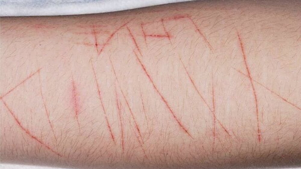 Neben den klassischen „direkten“ Selbstverletzungen (Abbildung 3) – typischerweise durch Kratzen, Ritzen, Schneiden oder Verbrennungen – haben in der medizinischen und zahnmedizinischen Betreuung auch „indirekte“ Selbstverletzungen Bedeutung. Hierbei handelt es sich um die Herbeiführung invasiver ärztlicher beziehungsweise zahnärztlicher Maßnahmen durch die Vortäuschung von Symptomen. Dieses „sich selbst krank machen“ kann sich sowohl auf die eigene Person als auch auf andere beziehen, betroffen sind hier vor allem Kinder, durch deren Verletzung medizinische Betreuung (Zuwendung) induziert wird.