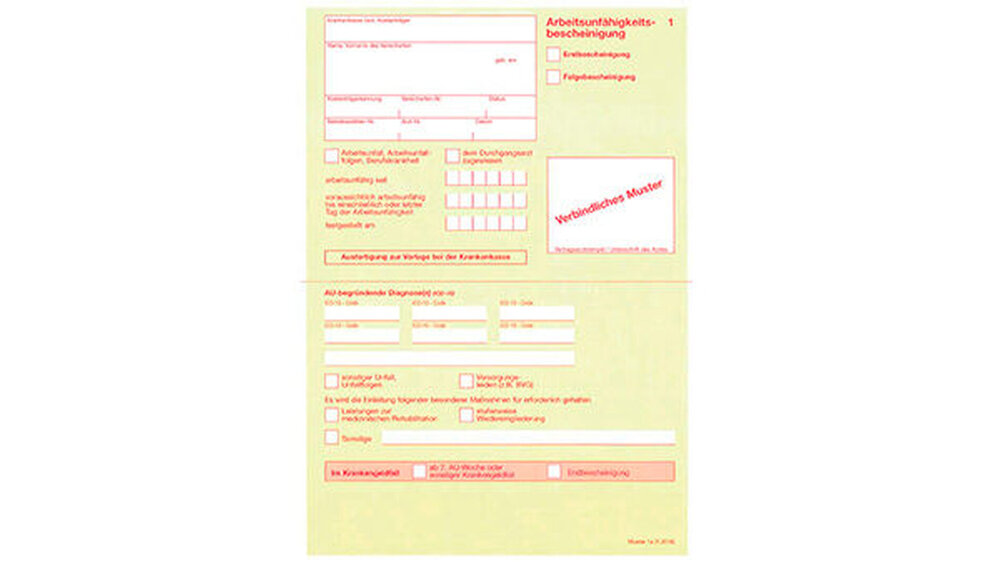 Das Neue beim geänderten Vordruck der Ärzte zur Bescheinigung der AU: Statt die Diagnose(n), die die Arbeitsunfähigkeit begründen, in einem Textfeld einzutragen, soll die Angabe zukünftig als ICD-10-Code erfolgen. Zudem wurden die Bescheinigung für die Krankengeldauszahlung (Bezeichnung: „Muster 17“) und die Arbeitsunfähigkeitsbescheinigung („Muster 1“) zusammengelegt. Zukünftig wird das neue „Muster 1“ für das Attest während der gesamten Dauer der Arbeitsunfähigkeit genutzt. Auch während des Krankengeldbezugs.
