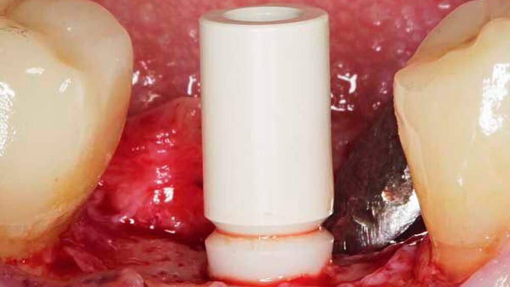Eine Arbeitsgruppe der Universität Basel hat sich mit dieser Thematik intensiv auseinandergesetzt und verschiedene altbekannte Zementierungsprotokolle hinsichtlich ihrer Kompatibilität mit einteiligen keramischen Implantaten beleuchtet. Im Fokus standen dabei zwei Methoden, um den Zementüberschuss zu verringern: 1. beseitigt das „Vorzementieren“ der Restauration auf ein Laboranalog einen großen Teil des Zementüberschusses bereits extraoral, während 2. ein oral gelegenes Abflussloch („venting hole“) in der Krone verhindern soll, dass der Zement beim Eingliedern in schwer instrumentierbare subgingivale Bereiche gepresst wird [Zaugg, Zehnder et al., 2017].