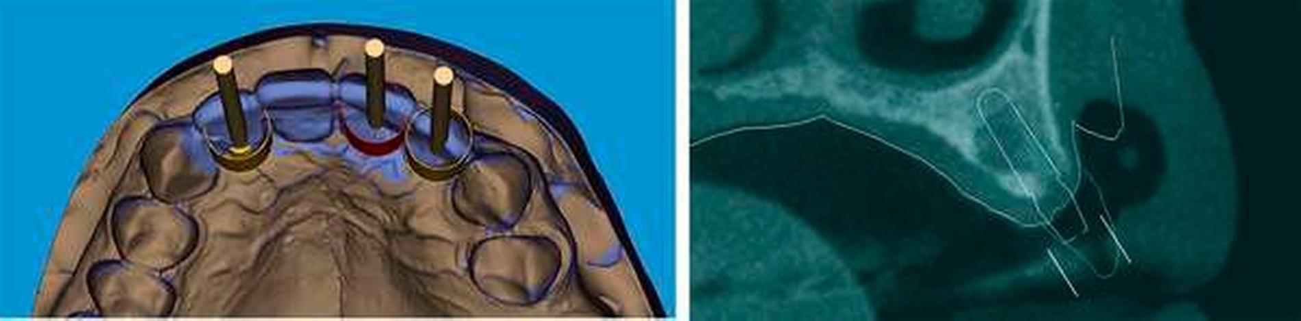 Bei der Implantatinsertion ist zu beachten, dass eine Prothetik-gerechte Positionierung zwingend notwendig ist. Fehlpositionierungen können nur in einem sehr geringen Ausmaß durch die Prothetik oder durch intraorale Modifikationen des Abutments kompensiert werden. Empfehlenswert ist also, die Implantatinsertion, geführt nach vorherigem prothetischem Set-up (sogenanntes Backward-Planning) durchzuführen. Mit einzelnen Systemen (Abbildung 1) ist eine geführte Implantatinsertion zum Beispiel auch dann möglich, wenn der Implantathersteller kein eigenes Chirurgie-Tray für eine geführte Insertion nach vorheriger Planung zur Verfügung stellt. Dies liegt daran, dass man auf die Verwendung von system-spezifischen Bohrhülsen gänzlich verzichtet und die Bohrerführung samt Tiefenstopp über am Winkelstück angebrachte Führungsschienen realisiert. So können die herkömmlichen Instrumente des gewünschten Implantatsystems verwendet werden. Weitere positive Nebeneffekte: Die Schiene ist sterilisierbar und so gestaltet, dass sie dem Chirurgen eine maximale Sicht auf den OP-Situs bei adäquater Wasserzufuhr ohne die Notwendigkeit innengekühlter Bohrer ermöglicht. Die dreidimensionale Planung der Implantation kann bei diesem System auf Basis jeder offenen Planungssoftware, beispielsweise SMOP (Swissmeda, Zürich, Schweiz) oder coDiagnostiX (Dental Wings, Letourneux, Kanada), erfolgen.