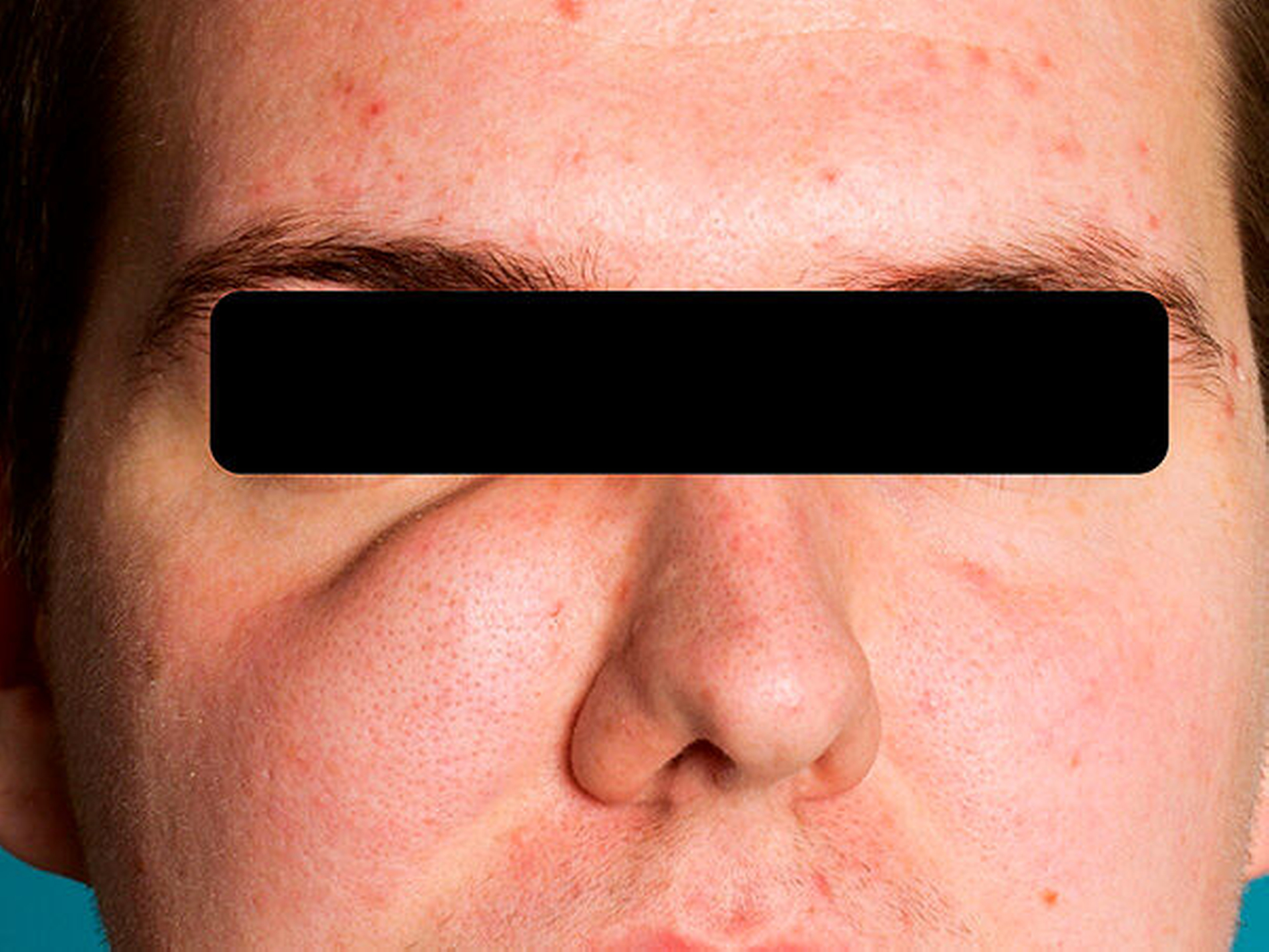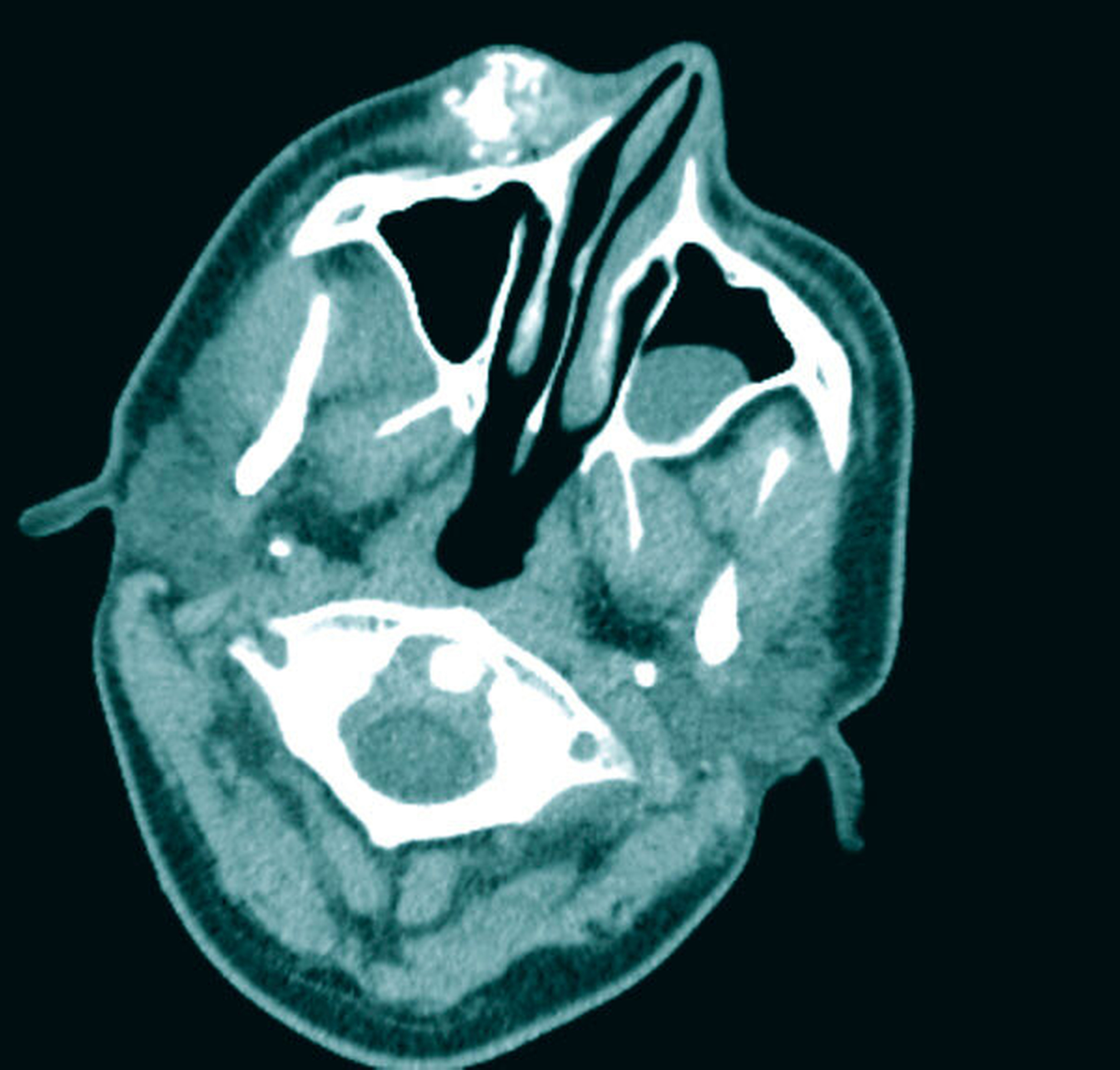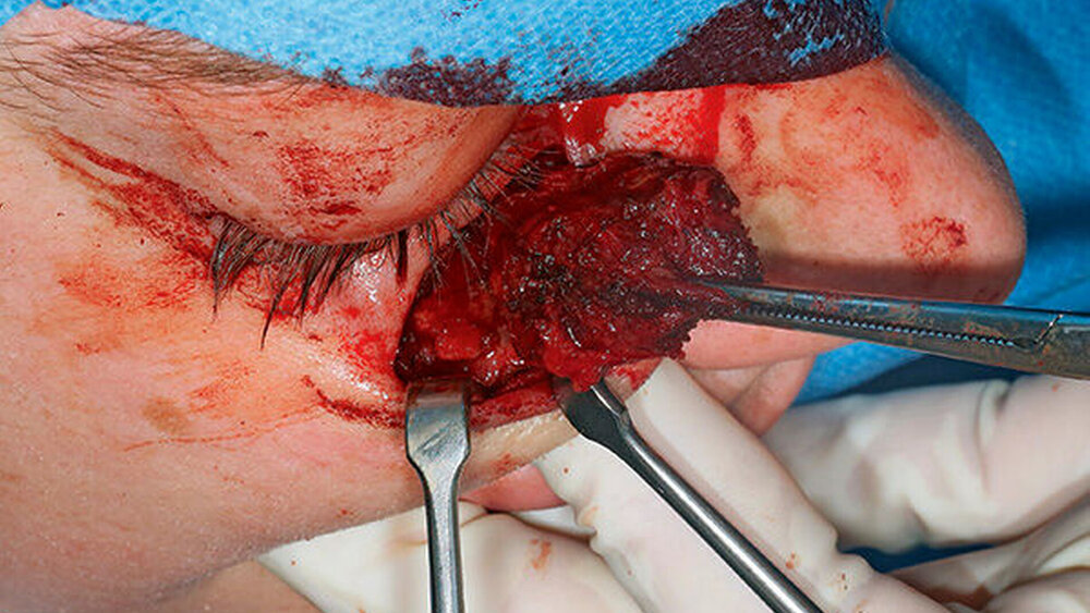 Der inzwischen 23-jährige Patient stellte sich mit der seit seiner Kindheit gering größenprogredienten Schwellung der rechten Wange in der Klinik für Mund-, Kiefer- und Gesichtschirurgie Mainz vor (Abbildung 1). Der bereits kongenital vorliegende Befund hatte sich in den vorherigen Biopsien histologisch als Lymphangiom herausgestellt. Aufgrund der – vorrangig optischen – Beeinträchtigung ohne Amblyopiegefahr waren schon früh eine Laserbehandlung des Befunds sowie – zwei Jahre vor der aktuellen Vorstellung – eine lokale Therapie mittels Imeron-verdünnter Belomycinlösung erfolgt. Klinisch stellte sich die Raumforderung als derber, indolenter Tumor ohne Pulsation und ohne sensible oder motorische Beeinträchtigung dar. Es zeigten sich weder Visuseinschränkungen noch Augenbewegungsstörungen. Aufgrund der optischen Veränderung der rechten Wange mit deutlich ästhetischem Defizit und hohem subjektivem Leidensdruck erfolgte die elektive Vorstellung zur operativen Therapie.