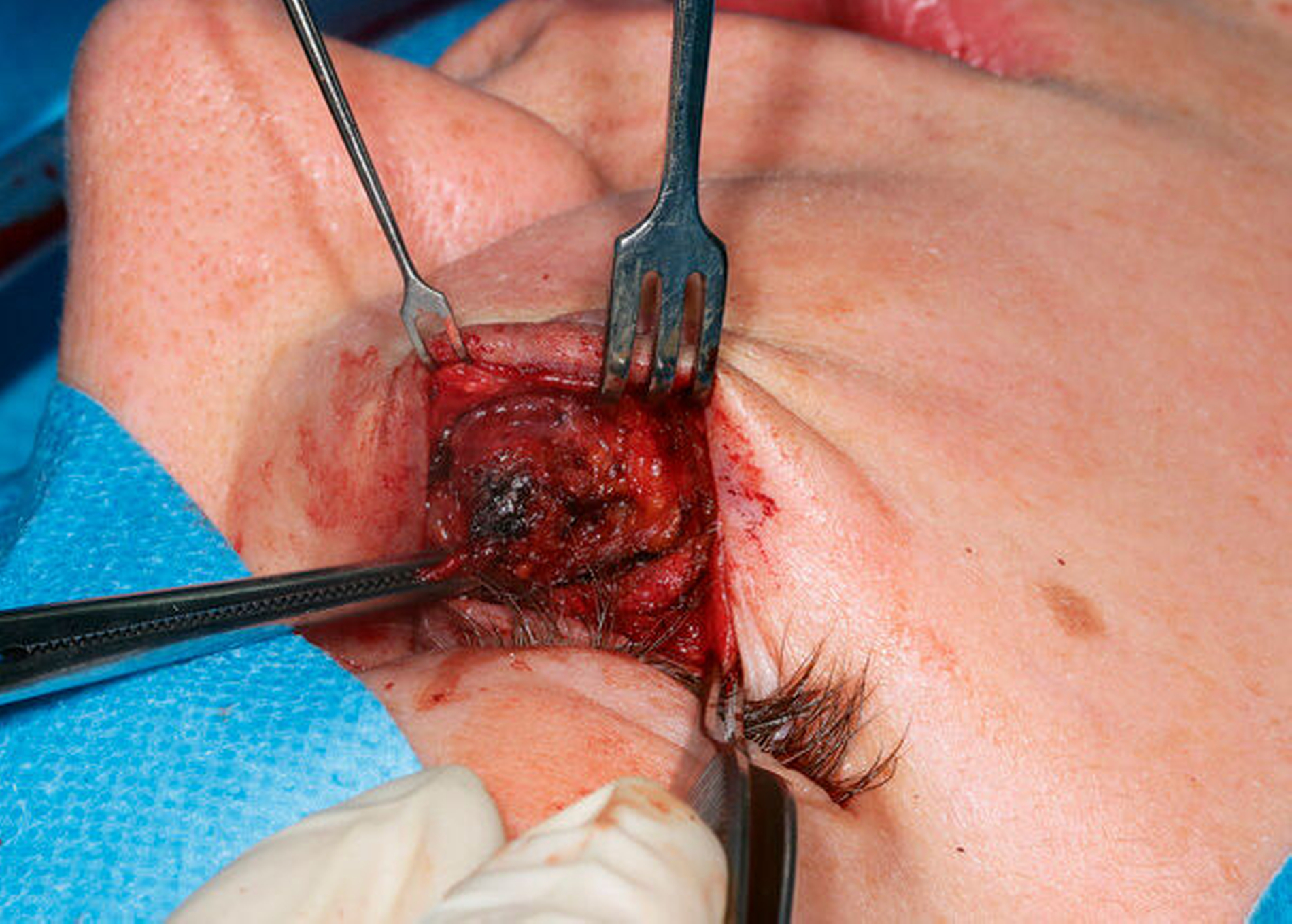 Differenzialdiagnostisch ist insbesondere das kapilläre Hämangiom in Betracht zu ziehen, dessen Wachstumsverhalten sich innerhalb der ersten sechs Lebensmonate deutlich progredient zeigt und bei Verdeckung der Pupille zur Amblyopie führen kann. Hierbei handelt es sich um weichgewebliche Schwellungen mit einer starken Rückbildungstendenz innerhalb der ersten sieben Lebensjahre, sodass häufig ein konservatives Vorgehen ausreichend ist [Barnes et al., 2005]. Kavernöse Hämangiome hingegen treten gehäuft bei Erwachsenen im Bereich der Orbita auf, stellen jedoch nicht immer eine Indikation zur operativen Entfernung dar [Grehn, 2012].