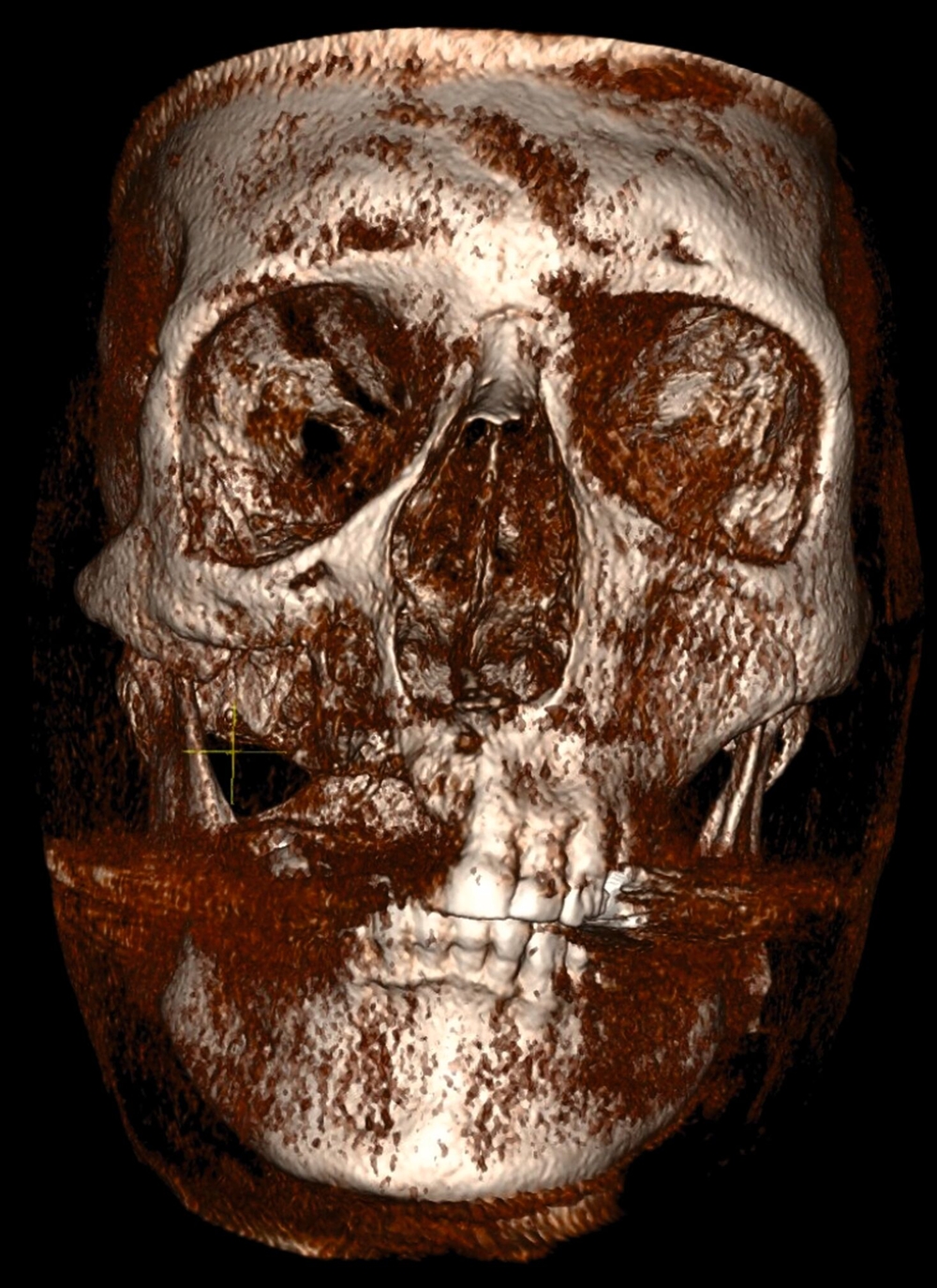 Patienten mit Unterkieferbezahnung oder geringer Mundöffnung sollten wissen, dass der Bohrvorgang komplizierter sein kann als bei zahnlosen Patienten. Zwei Fälle von orbitaler Penetration und Infektion wurden beschrieben, die zu Bindehauthämatomen führten [Davo et al., 2020; Fernandez-Ruiz et al., 2021] (Abbildung 5).