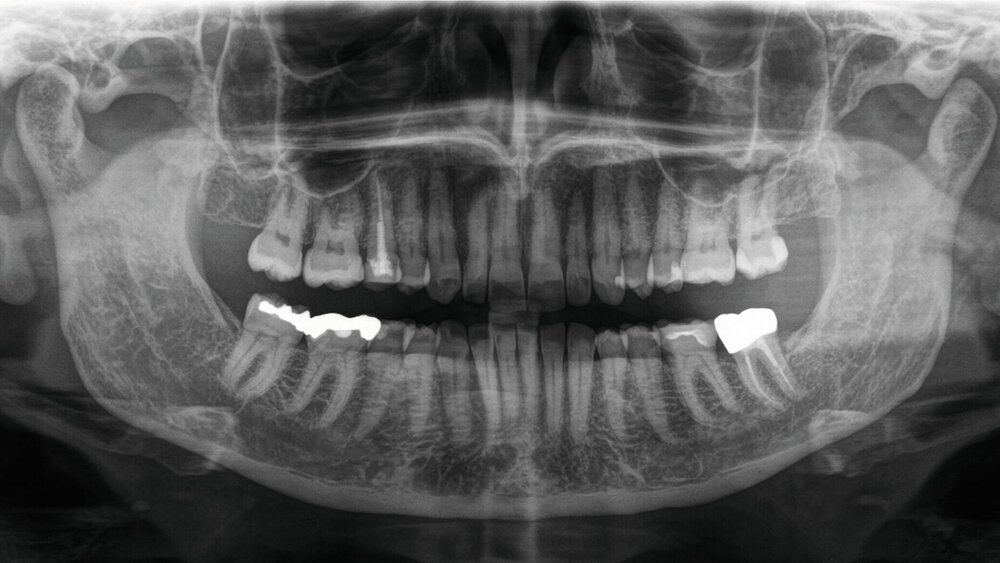 In der zweidimensionalen Bildgebung mittels Orthopantomogramm zeigten sich keine intraossären Raumforderungen im Bereich des N. alveolaris inferior oder des N. mentalis. Die Knochenbinnenstruktur der Unterkieferspongiosa zeigte sich regelrecht. Es lagen keine Hinweise für einen dentogenen Fokus oder allgemein entzündliche Prozesse vor.