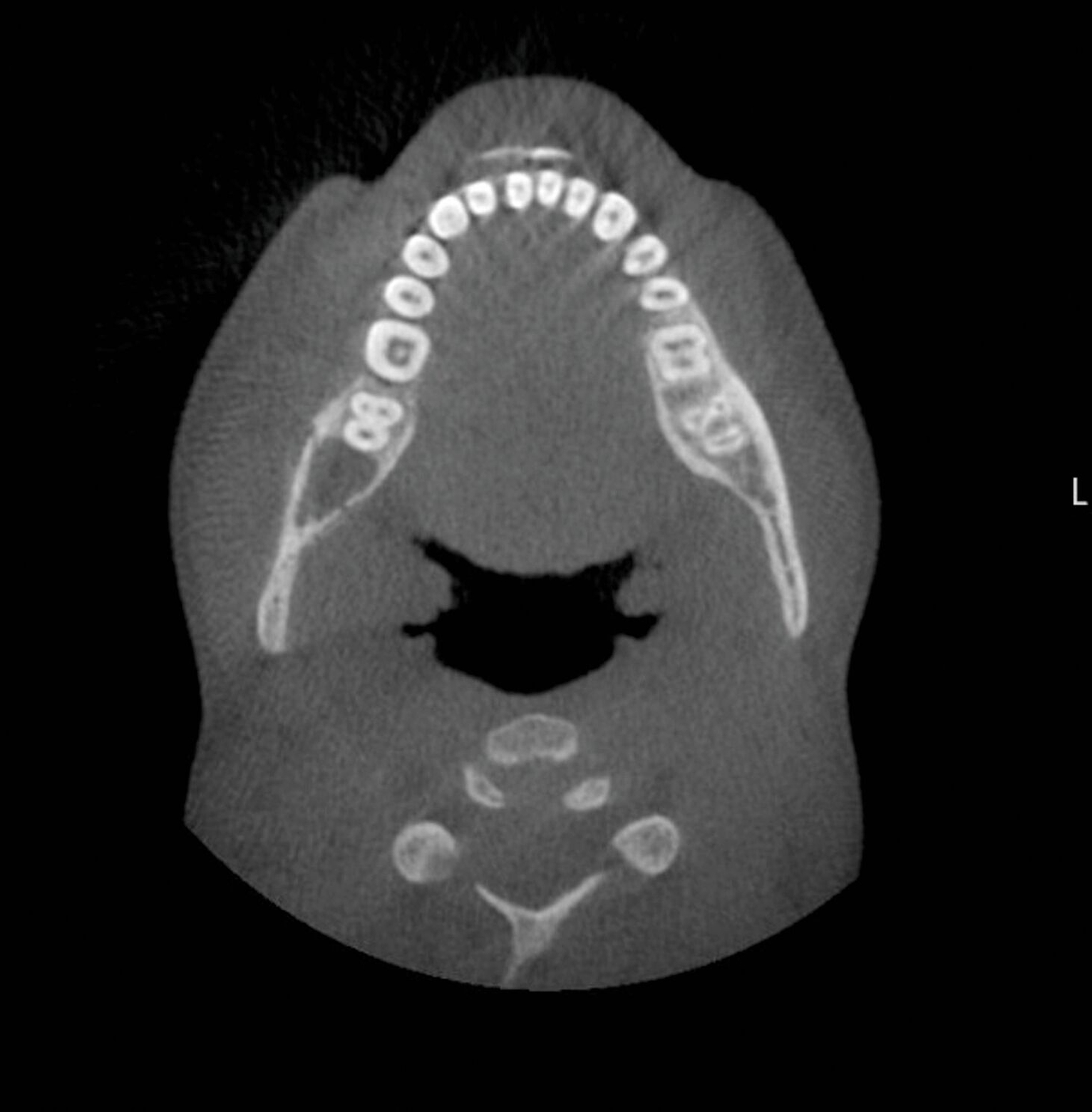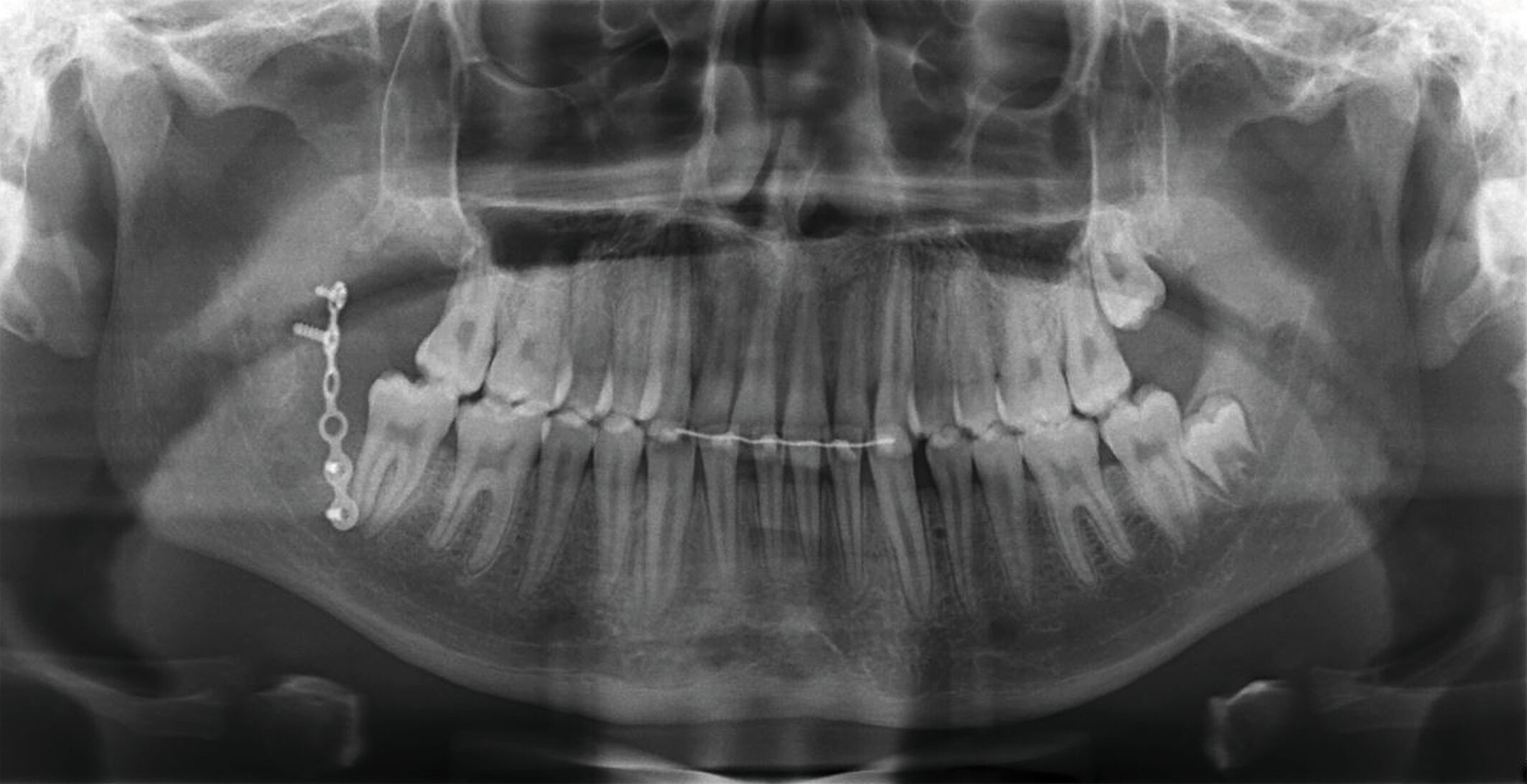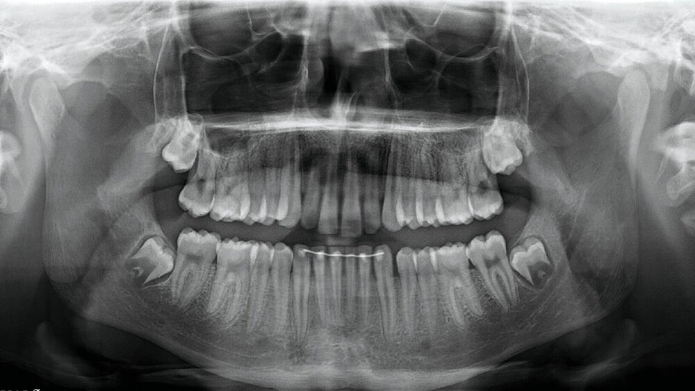 Im Januar 2023 stellte sich ein 17-jähriger Patient nach Überweisung vom Hauszahnarzt mit der Bitte um Mitbeurteilung in der Poliklinik der MKG-Chirurgie der Universitätsmedizin Mainz vor. Im Dezember 2022 waren ihm alio loco die Zähne 18 und 48 in Lokalanästhesie entfernt worden (Abbildung 1). Einige Stunden vor dem Zahnarztbesuch hatte der Patient ein lautes Knacken beim Kauen vernommen, was zu anschließenden Schmerzen geführt habe. Beim Zahnarzt erfolgte daraufhin eine Panoramaschichtaufnahme, die jedoch keinen sicheren Frakturausschluss ermöglichte.