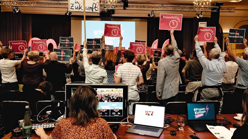Die VV-Vorsitzende Dr. Petra Reis-Berkowicz betonte, es sei die Pflicht der Vertragsärzte, den drohenden Zusammenbruch der vertragsärztlichen Versorgung zu verhindern. Von der Sondersitzung solle ein deutliches Signal an die Öffentlichkeit ausgehen. Die Delegierten der 17 KVen stellten klar, wo aus ihrer Sicht dringender Handlungsbedarf in der Versorgung besteht. Dazu gehörten eine tragfähige Finanzierung der Versorgung unter Berücksichtigung von Inflation und Kostensteigerung, ein Ende der Budgetierung und Bürokratie, Maßnahmen gegen den Praxisnachfolger- und Fachkräftemangel, der Wegfall von Regressen und Sanktionen und eine Digitalisierung, die den Arbeitsalltag in den Praxen erleichtert.