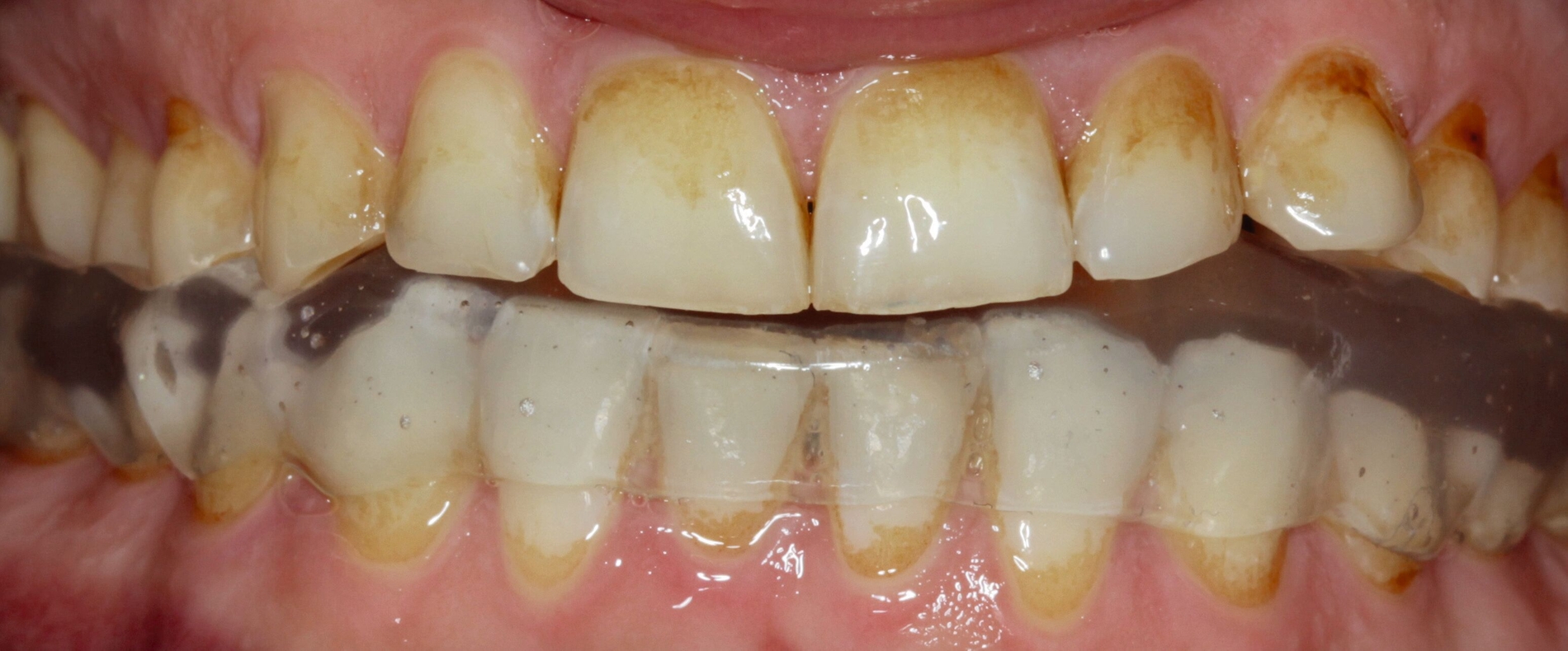 Nach dem Beginn der Therapie und dem regelmäßigen Tragen der Schienen während des Trainings, bei Wettkämpfen und vor allem nachts verminderten sich die Beschwerden des Patienten nach circa drei Monaten deutlich. Es wurde als therapeutische Konsequenz der statische Vorkontakt an 37 leicht reduziert, um dem Patienten auch ohne Schienen eine verbesserte Okklusion zu ermöglichen. Nach sechs Monaten war der Patient nahezu schmerzfrei.