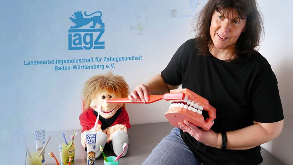 „Anfangs waren unsere unermüdlichen Fachkräfte noch mit Gebiss und Zahnbürste unterwegs", erinnert sich Möller-Scheib. „Inzwischen nutzen sie nicht nur die Maskottchen in Form von Handpuppen, um die jungen Generationen zu erreichen, sondern eben auch ansprechende und zeitgemäße Videos.“ Für das kreative Engagement wurden die regionalen AGZ mehrfach ausgezeichnet, 2022 mit dem Wrigley-Prophylaxe-Preis.