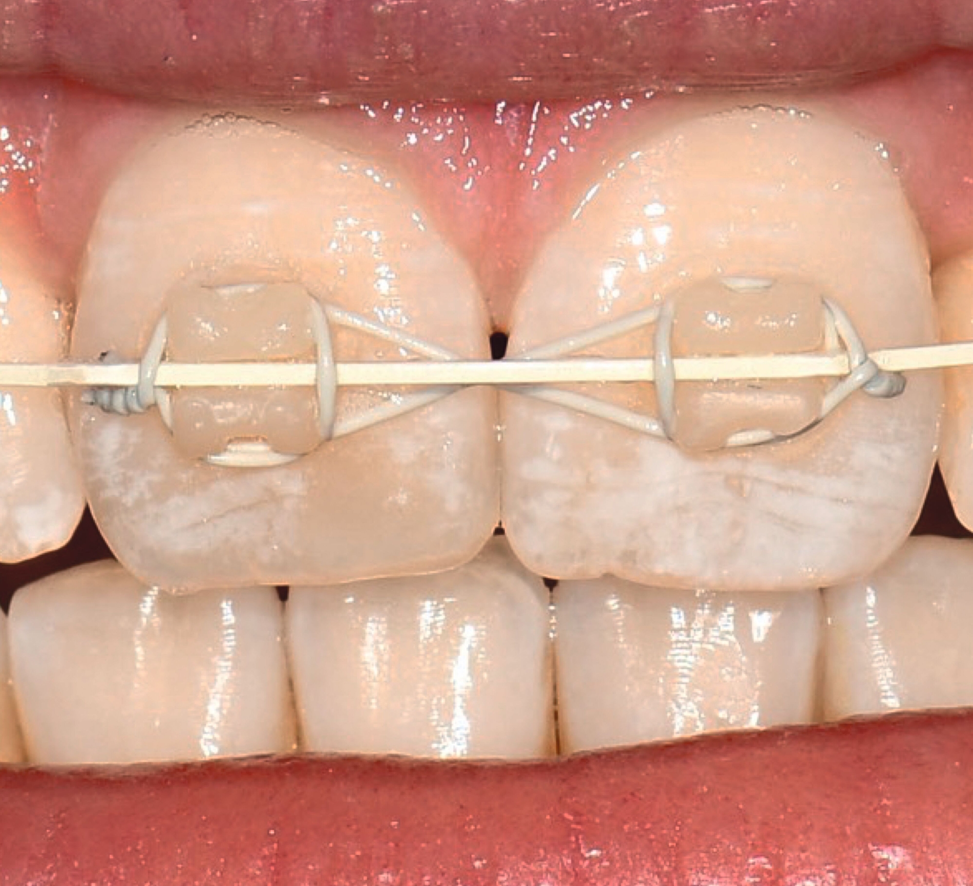 Als Alternative zu Alignern können auch Brackets mittlerweile im 3-D-Druckverfahren hergestellt werden [Sha et al., 2018; Sha et al., 2019; Bauer et al., 2023] (Abbildungen 2a und 2b). Neben der Nutzung des Angebots kommerzieller Anbieter (beispielsweise Lightforce Company) besteht dabei die Möglichkeit der Herstellung im praxisinternen 3-D-Drucker. Zum Einsatz eignen sich unter anderem Keramik-gefüllte 3-D-Druckkunststoffe der Biokompatibilitätsklasse IIa, die für einen langfristigen intraoralen Einsatz zertifiziert sind (zum Beispiel Permanent Crown Resin, Formlabs) [Papageorgiou et al., 2022; Bauer et al., 2023; Hodecker et al., 2023; Panayi, 2023].
