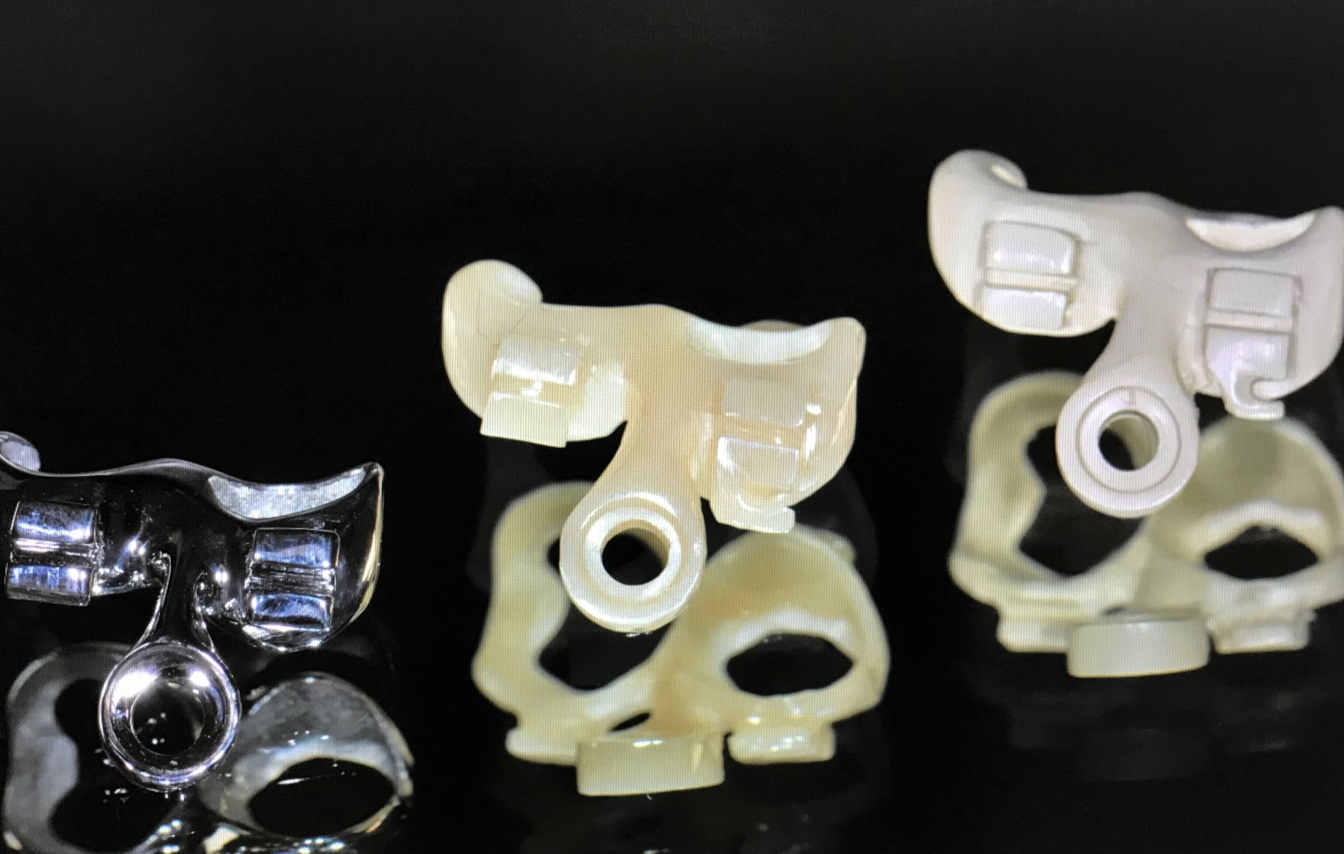Die Gruppe der 3-D-gedruckten Metallapparaturen dürfte bisher am meisten vom 3-D-Druck profitiert haben. Regelhaft werden hierfür noch Cobalt-Chrom-basierte Materialien im Stereolithografie-Verfahren (SLM) verwendet. Aufgrund einer höheren Biokompatibilität nimmt der 3-D-Druck von Titan-basierten Materialien jedoch zu.