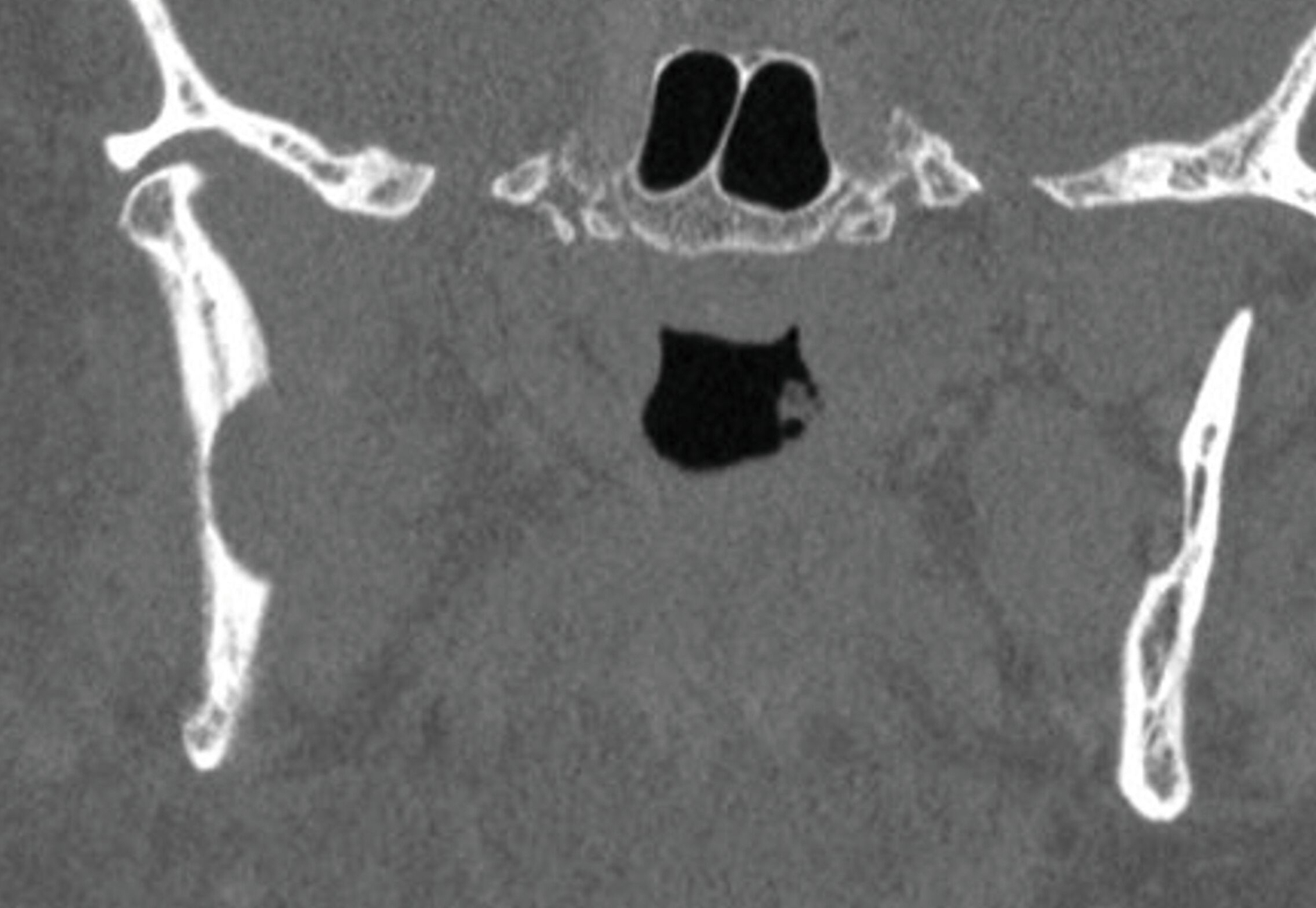 Ein 75-jähriger Patient stellte sich zur Nachkontrolle nach der Entfernung einer Keratozyste im rechten Unterkiefer vor, die vor mehr als fünf Jahren in einer anderen Einrichtung durchgeführt worden war. In der Zwischenzeit war aufgrund eines perimandibulären Abszessgeschehens in derselben Region eine extraorale Inzision vorgenommen worden. Die Panoramaschichtaufnahme zeigte im Vergleich zur Voruntersuchung eine fortschreitende multifokale Osteolyse des rechten aufsteigenden Unterkieferasts, was sich durch die ergänzende Computertomografie bewahrheitete (Abbildung 1). Eine enoral durchgeführte Probeentnahme bestätigte die Arbeitsdiagnose eines Rezidivs der zuvor diagnostizierten Keratozyste.
