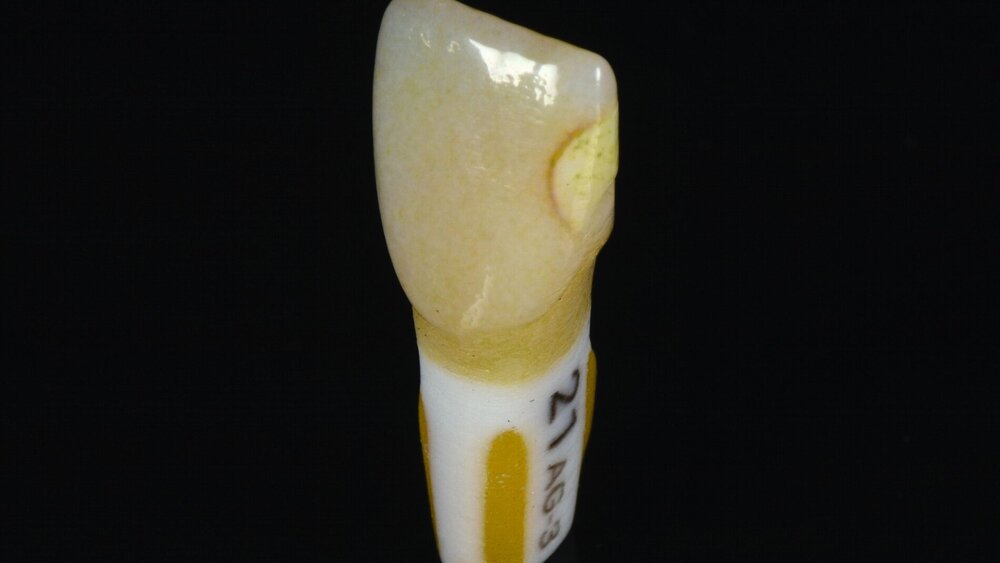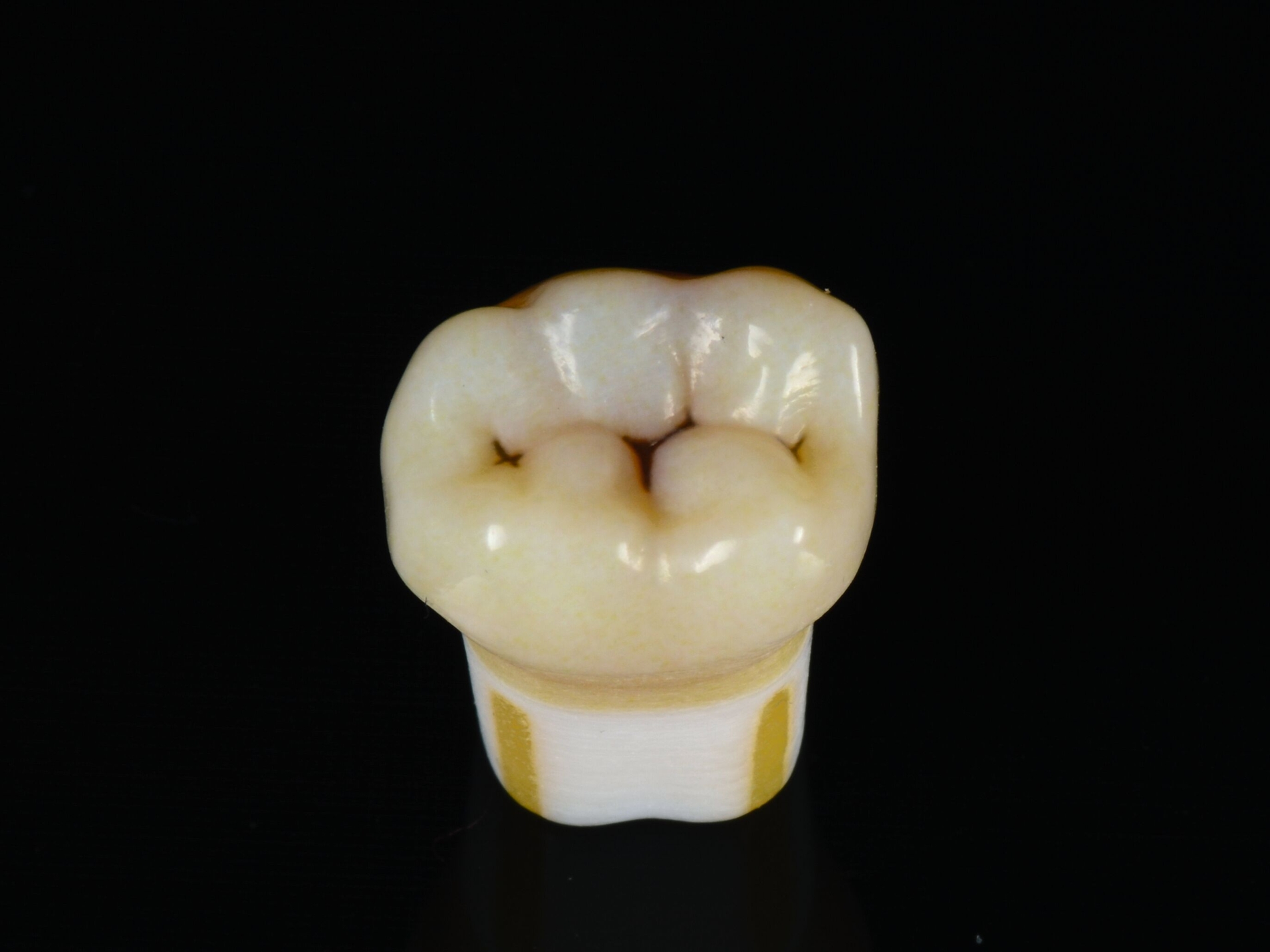 Technische Fortschritte wie die stetige Verbesserung des CAD-Designs und der dreidimensionalen Drucktechnologie bieten heute die Möglichkeit, deutlich realitätsnähere Übungszähne zu entwickeln. Wir haben in mehrjähriger Arbeit vielfältige Kombinationen verschiedener Materialien getestet und im Ergebnis neue, besser an die klinische Praxis angepasste Übungszähne hergestellt. In dem verwendeten Druckverfahren werden die verschiedenen Materialien gleichzeitig gedruckt, was neben der Mehrfarbigkeit auch die Simulation unterschiedlicher Materialeigenschaften erlaubt. Die 3-D-gedruckten Zähne sind in ihrem Aussehen und in ihren Behandlungsschritten mit echten Zähnen vergleichbar.