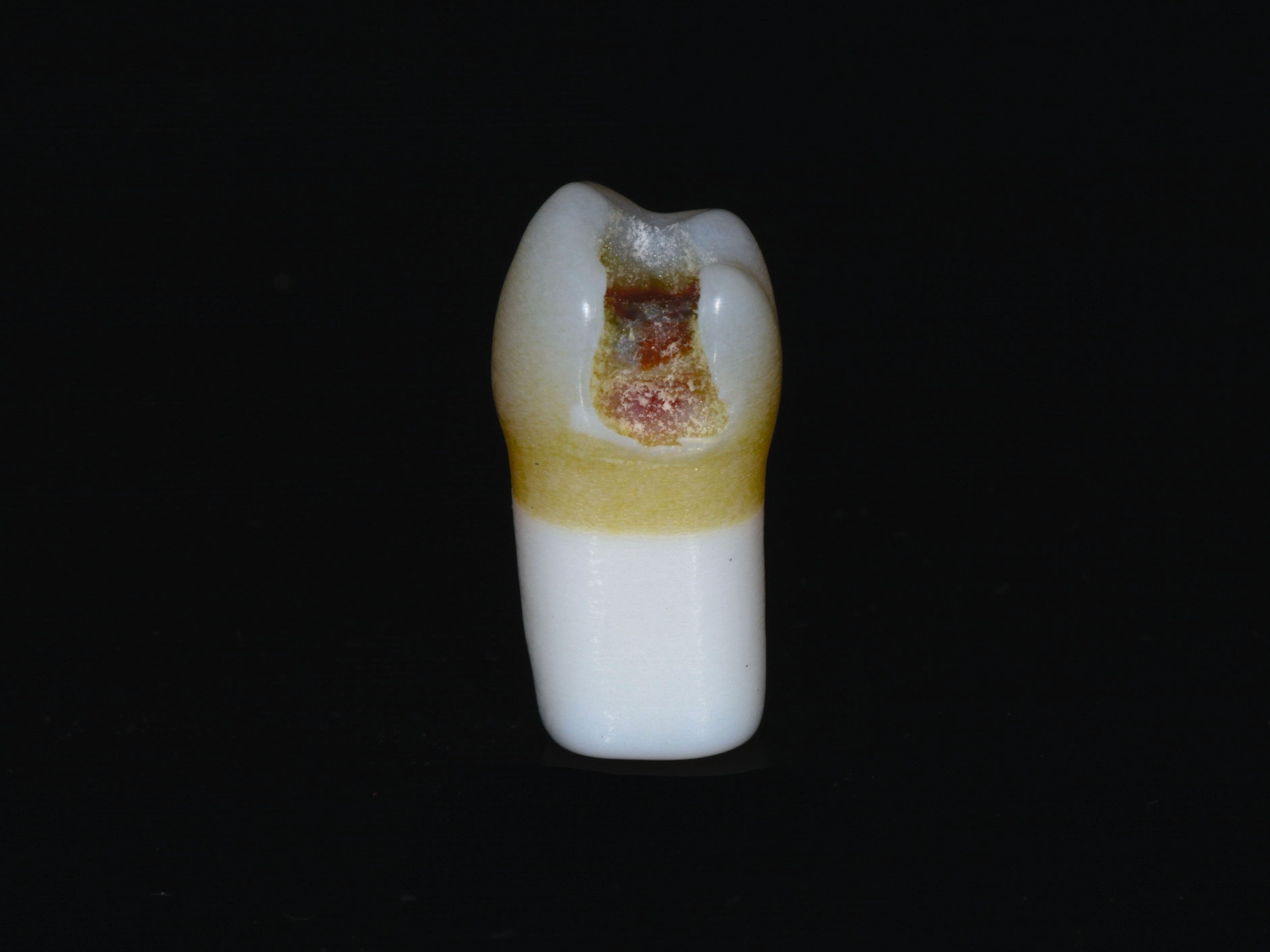 Durch die Einführung innovativer Herstellungsverfahren – basierend auf digitalen Technologien – ist es möglich, Übungszähne im 3-D-Druckverfahren herzustellen. Üblicherweise wurden solche Modelle zumeist im SLA- oder DLP-Druckverfahren aus einfarbigem Kunststoff produziert [Kroger et al., 2017; Marty et al., 2019; Reymus et al., 2019; Reymus et al., 2021]. Abgebildet wurden etwa endodontische, restaurative und chirurgische Behandlungssituationen. Studien konnten einen positiven Lerneffekt solcher Modelle belegen [Dobros et al., 2022; Hohne und Schmitter, 2019; Kroger et al., 2017; Marty et al., 2019; Panpisut et al., 2022; Reymus et al., 2021].