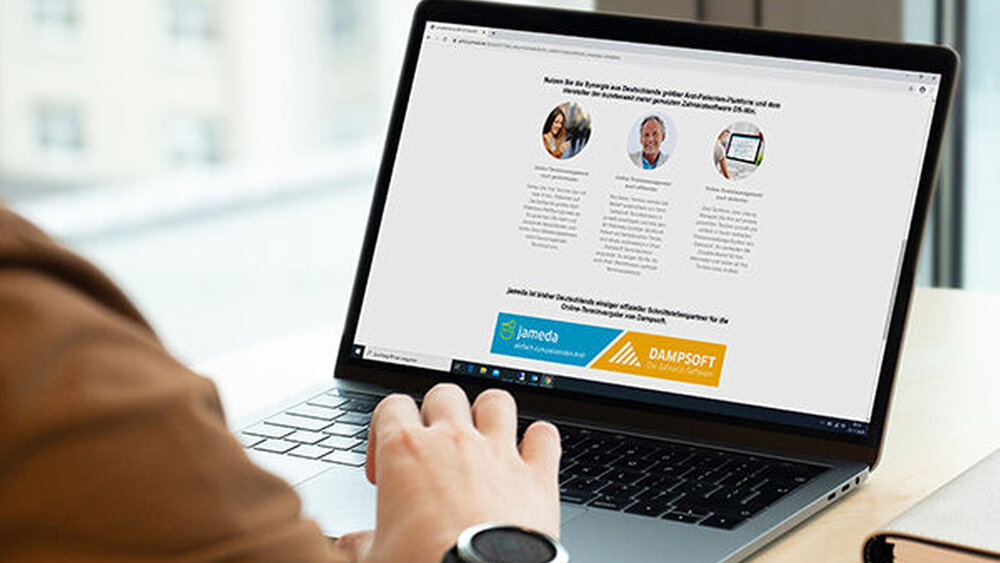 Ähnlich einer Website können dort Leistungen beschrieben, das Team vorgestellt sowie Öffnungszeiten und Kontaktdaten veröffentlicht werden. Folgerichtig bieten diese Plattformen auch Online-Terminbuchungssysteme an, die es dem Patienten ermöglichen, nicht mehr nur Kontakt mit dem ausgewählten Arzt aufzunehmen, sondern auch direkt einen Termin zu vereinbaren. Damit die online gebuchten Termine in der Praxisverwaltungssoftware des Zahnarztes landen und synchronisiert werden, haben Dampsoft und jameda an einer gemeinsamen Lösung gearbeitet.