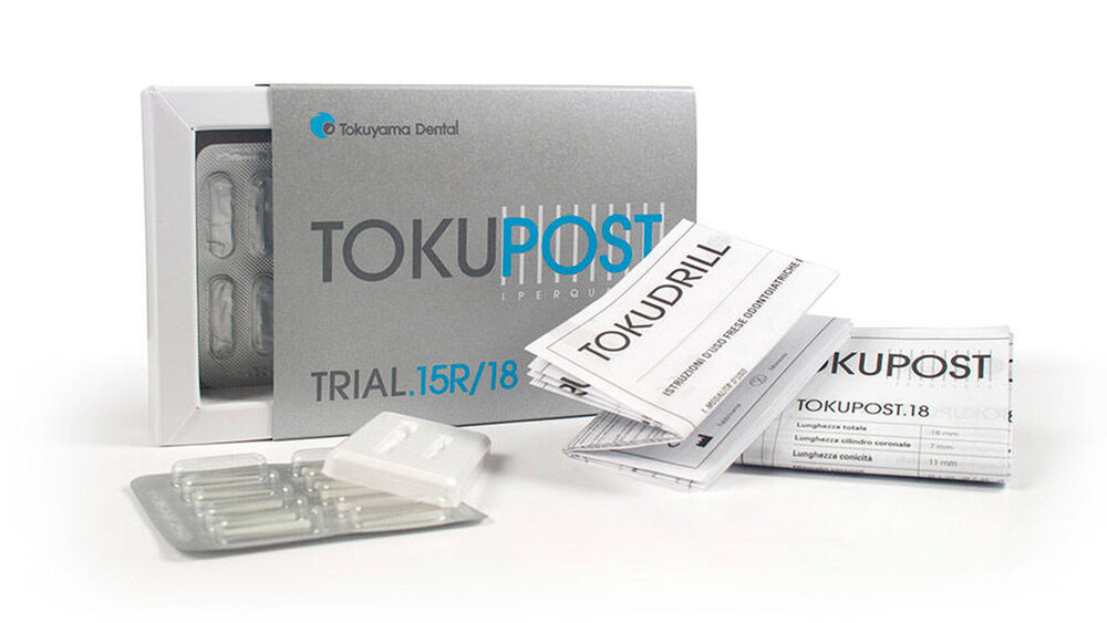 TOKUPOSTs sind in zwei verschiedenen Typen – 18mm lang ohne Retentionsrillen oder 15 mm lang mit Retentionsrillen – sowie jeweils drei verschiedenen Größen erhältlich. Um die einzelnen Größen schnell und einfach erkennen zu können, verfügen die TOKUPOSTs über farblich kodierte Köpfe. Darüber hinaus sind die TOKUPOSTs vorsilanisiert, so dass ein sofortiger Einsatz ohne weitere Vorbehandlungen möglich ist. Für den Patienten sind die TOKUPOSTs aufgrund der Quarzfasern und des geringen Allergierisikos besonders gut verträglich.
