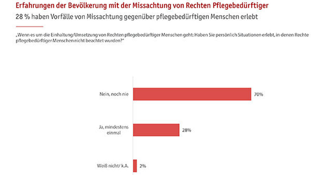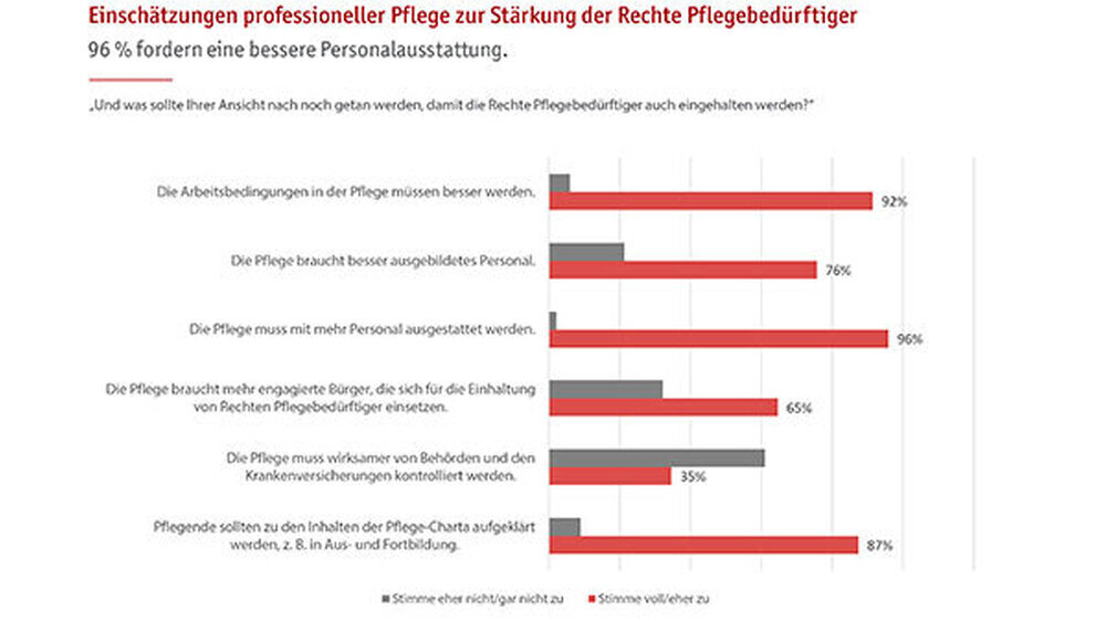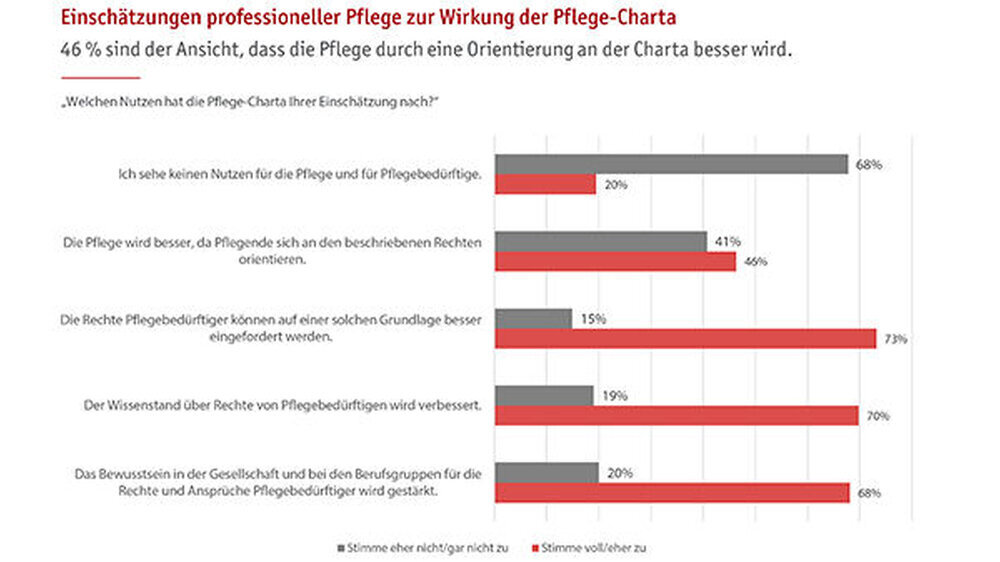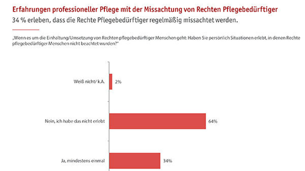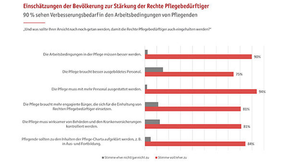 Die Umfrage wurde als computergestützte telefonische Befragung (Computer Assisted Telephone Interview) durchgeführt. Stichproben: 1.008 Pflegedienste und -einrichtungen nahmen an der Befragung teil, davon 502 stationäre und 506 ambulante Einrichtungen. Am häufigsten wurde dabei mit Pflegedienstleitungen (398 Befragte) oder geschäftsführendem Personal (391 Befragte) gesprochen. In einer zweiten Befragung wurden 1.001 Frauen und Männer ab 18 Jahren aus ganz Deutschland mit Kontakt zu Pflegebedürftigen interviewt. Das Studienende war im Oktober 2016.