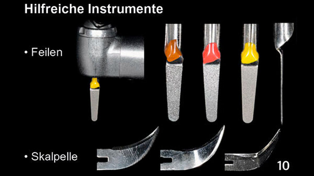 Die erodierten bzw. sklerotisch veränderten Dentinoberflächen wurden vor der Applikation des Adhäsivsystems mit einem Feinkorndiamanten zur Verbesserung der Haftkräfte angefrischt (Camargo et al. 2008; Zimmerli et al. 2012).